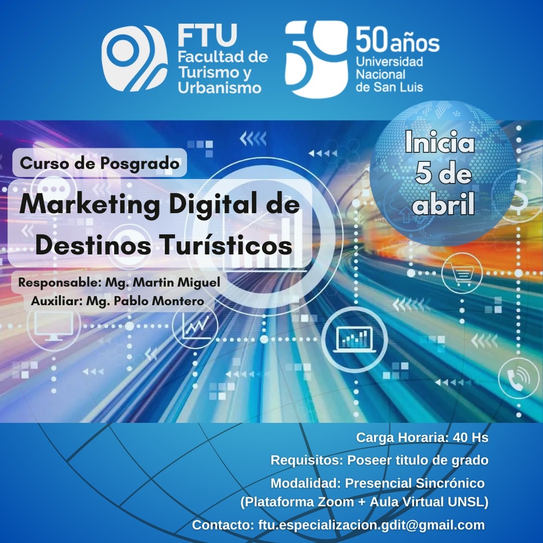 La Secretaría de Investigación y Posgrado de la Facultad de Turismo y Urbanismo (FTU) dictará el curso de Posgrado Marketing Digital de Destinos Turísticos.