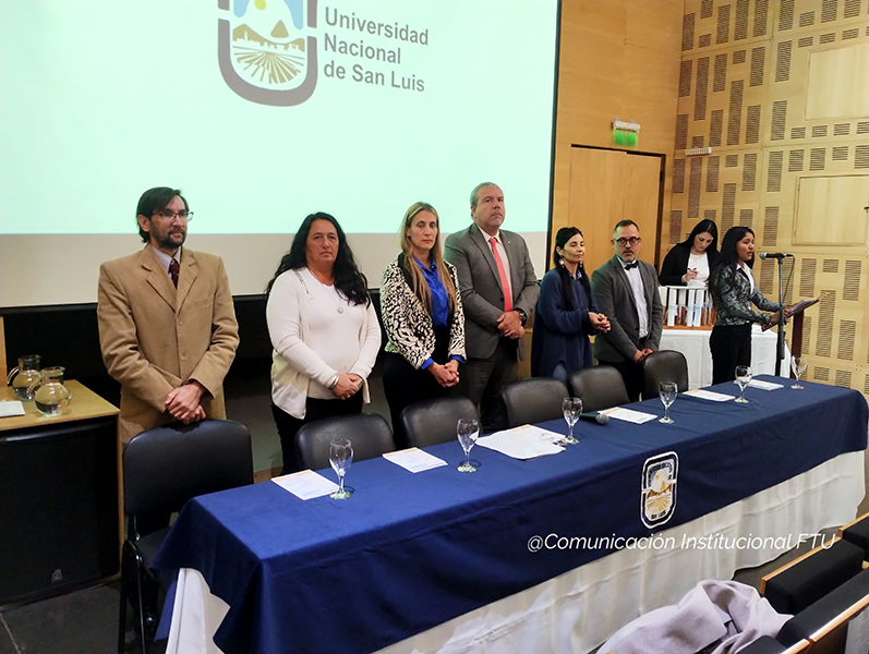 Presidió el acto el rector de la Universidad Nacional de San Luis (UNSL) C.P.N. Víctor Moriñigo, acompañado en la Mesa Académica por la Decana de la FTU Esp. Agustina Generoso, el Vicedecano Dr. Pablo Perepelizin, el secretario académico de la FTU, Lic. Hernán Tamagnone, y de Rectorado la Secretaria Académica Dra. Rosa Lorenzo y Dra. Nora Reyes Secretaria de Posgrado.