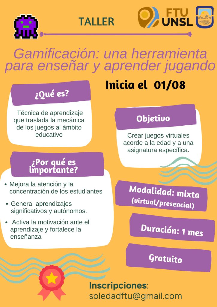 Taller “Gamificación. Una herramienta para enseñar y aprender jugando” – Inicia 1 de agosto