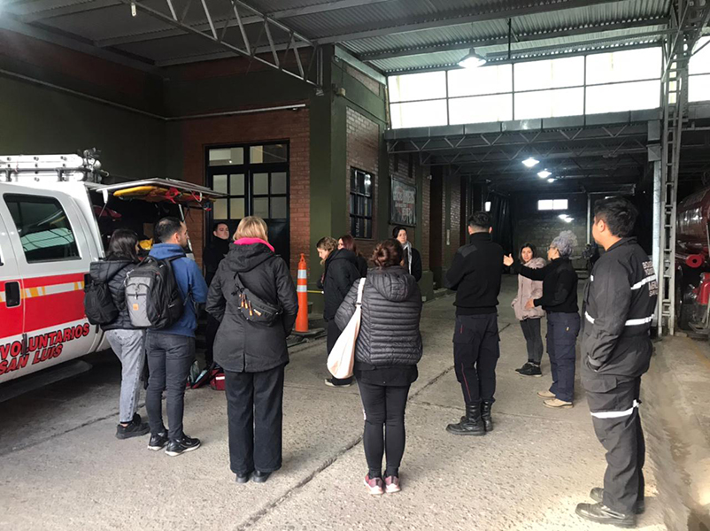 Estudiantes de la Facultad de Turismo y Urbanismo (FTU) en el marco de la asignatura Organización de los Servicios Hoteleros II, perteneciente a la carrera Licenciatura en Hotelería realizaron una visita guiada al Cuartel de Bomberos Voluntarios de Merlo y participaron de una capacitación sobre Reanimación Cardiopulmonar (RCP).