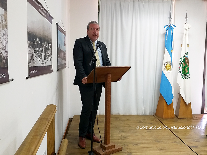 A continuación el Mgtr. Espinoza al dirigirse a los presentes dijo “…La facultad viene realizando un trabajo muy importante a nivel regional y con una presencia muy grande a nivel nacional y también a nivel del Consejo de Decanos. Próximamente se preparan para asumir la Vicepresidencia del Consejo, lo cual será un nuevo desafío para ustedes…”. Luego continúo diciendo “…Creo que hoy es una oportunidad para celebrar este encuentro, esta posibilidad de seguir haciendo crecer el campo del turismo, de ver la diversidad de ponencias que hay en este Congreso. Creo que hay que celebrar que hay que seguir fortaleciendo la facultad de turismo en un lugar tan importante y tan emblemático para el turísmo en Argentina como es Villa de Merlo y seguir construyendo de cara al futuro un turismo que en esa complejidad que mencionaron desde el principio de los discursos vayamos reconociendo el valor que tiene la profesionalización y en ese sentido el valor que tiene el sistema de educación pública de Argentina para hacer los aportes a esa política de desarrollo. Muchas gracias…”