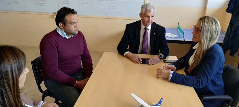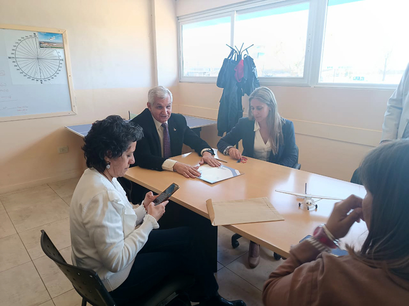 El acto tuvo lugar en la sede del Aeropuerto Internacional Valle del Conlara, con la presencia de la Decana Esp. Agustina Generoso, la secretaria de Extensión y Vinculación de la Facultad Lic. Mónica Torrez, y los directores de carrera GUT Gabriel Magnago y Lic. Lucía Miranda, quienes fueron recibidos por el titular del EDA, Comandante Horacio Quiroga y el Jefe del Departamento de Infraestructura del Aeropuerto, Cristian Andrada.