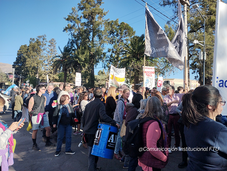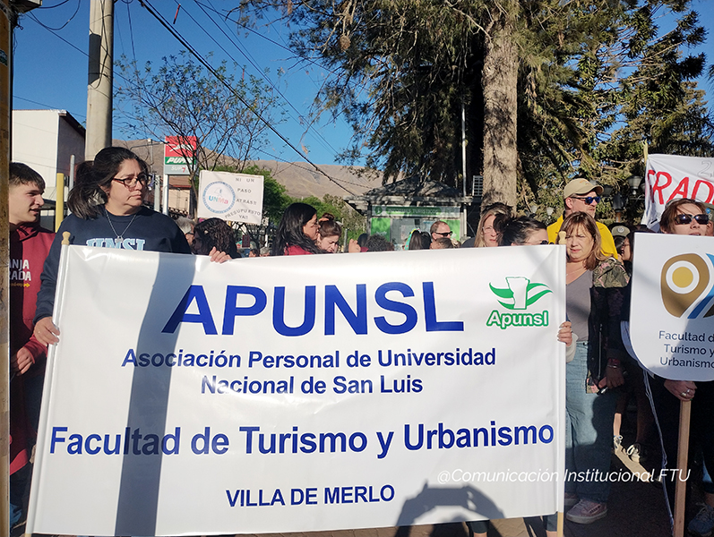 Estudiantes, graduados, personal docente y nodocente de la Facultad de Turismo y Urbanismo se reunieron para marchar, junto a la Universidad Nacional de Los Comechingones y a la comunidad de la Villa de Merlo, en defensa de la Ley de Financiamiento Universitario y en contra del veto.