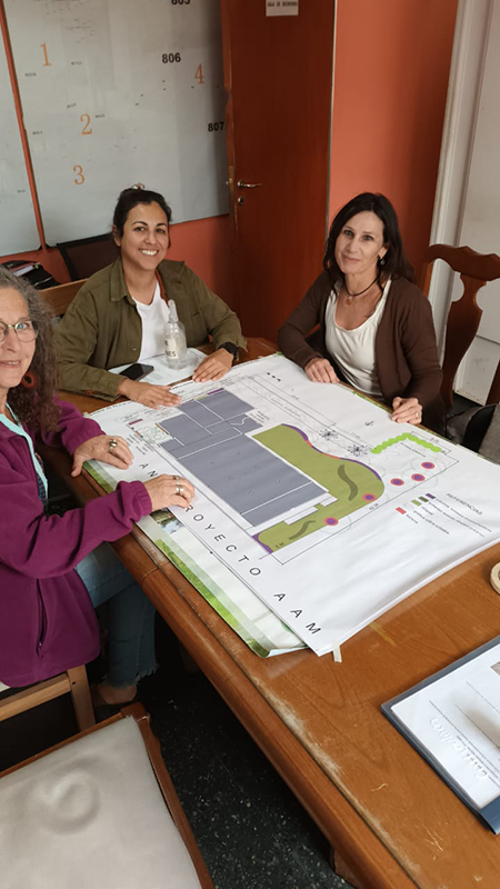 La docente de la Facultad de Turismo y Urbanismo (FTU) Arq. Melina Costa, directora del Proyecto de Extensión de Interés Social (PEIS) 11-0523 “Diseño participativo de un espacio cultural comunitario” (Espacio exterior de Asociación Amigxs de Merlo), mantuvo una reunión con representantes del Municipio de la Villa de Merlo, Arq. Gabriela González Rodio y Bruno Mini, y representantes de la Asociación Amigos de Merlo, Laura Alvarez y Marina Koval, para la presentación del Anteproyecto elaborado en el marco del mencionado PEIS, con el objeto de coordinar las acciones de intervención para la puesta en valor del Paseo de los Artesanos, en función del diseño propuesto.