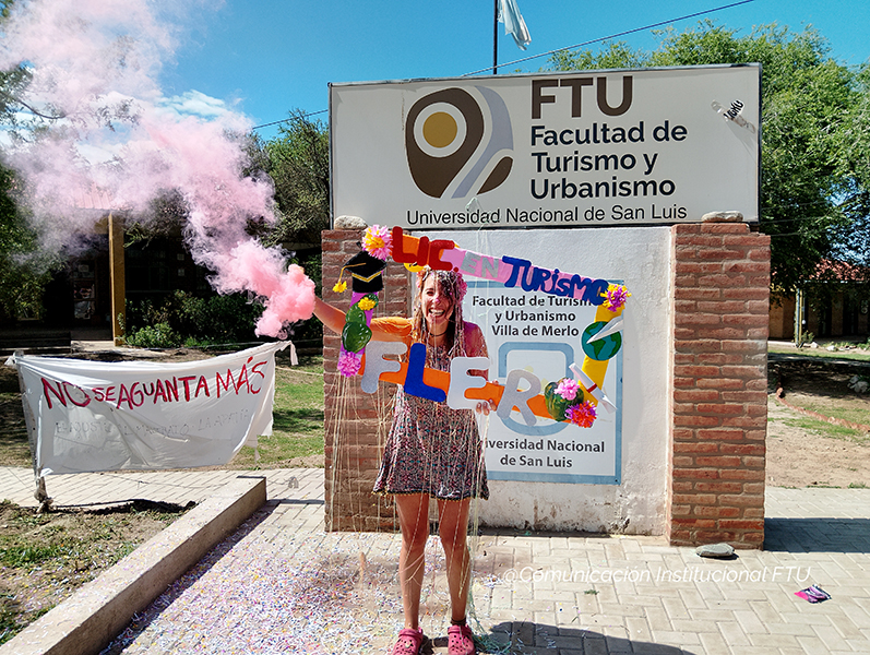 Florencia Yael Addala defendió el Trabajo Final Integrador (TFI) titulado “Desarrollo turístico local en Santa Rosa del Conlara. Una mirada desde la animación sociocultural como herramienta de transformación social”, y accedió así al título de Licenciada en Turismo.