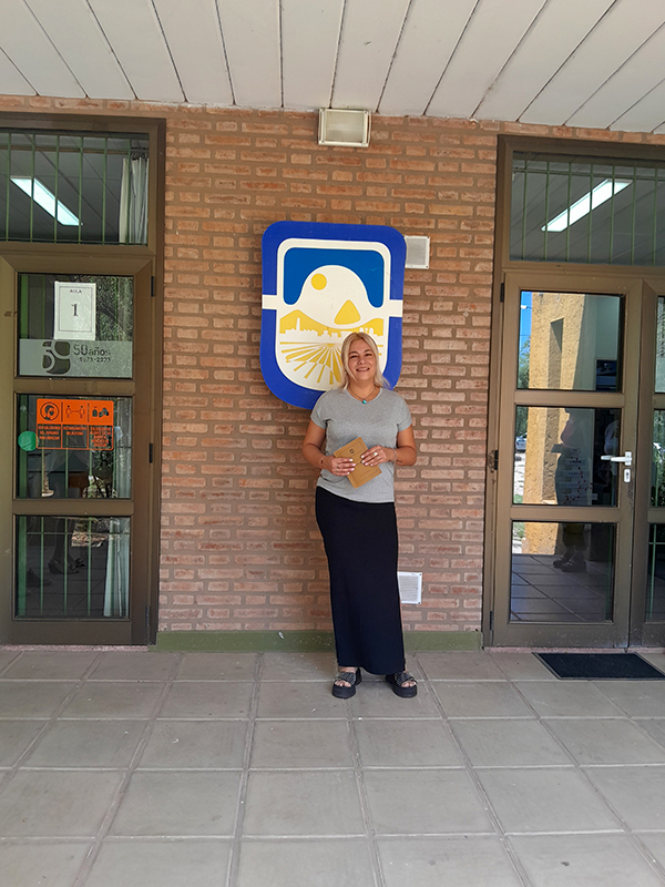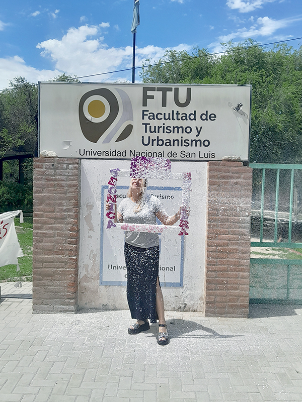 Se trata de Erica Silvina Flores que accede al título de Técnica Universitaria en Gestión Hotelera al rendir su última materia Práctica Pre Profesional II de la carrera.