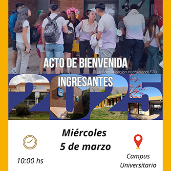 La Facultad de Turismo y Urbanismo (FTU) dependiente de la Universidad Nacional de San Luis (UNSL) realizará el miércoles 5 de marzo el Acto de Bienvenida al Ingresante 2025. Será en el Campus Universitario en Barranca Colorada a partir de las 10:00 Hs.