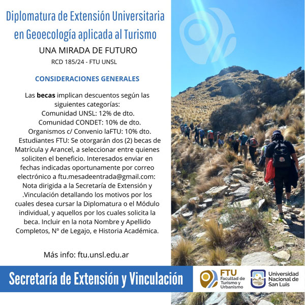 Se encuentra abierta la inscripción al Módulo 2 de la Diplomatura de Extensión en “Geoecología Aplicada al Turismo. Una mirada de futuro”