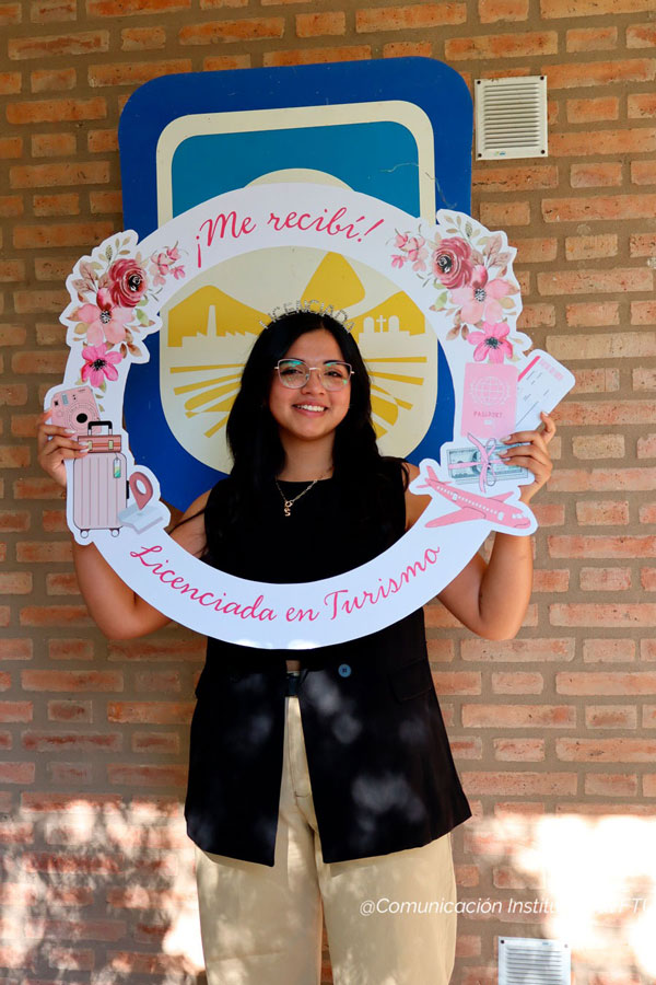 Se trata de la estudiante Sofía Figueroa quien al defender el Trabajo Final Integrador (TFI) accede al Título de Licenciada en Turismo.