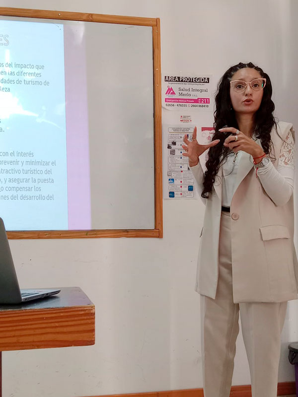 Se trata de Julieta Atencia Bonilla, quien al realizar la defensa oral y pública de su Trabajo Final Integrador (TFI) titulado “Efectos de las acciones de los turistas sobre los arroyos de la Villa de Merlo”, accedió al Título de Licenciada en Turismo.
