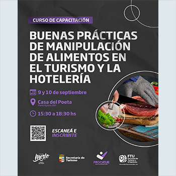 El martes 9 y miércoles 10 de septiembre, la FTU brindará la Capacitación “Buenas Prácticas de Manipulación de Alimentos en la actividad Turística y Hotelera”.