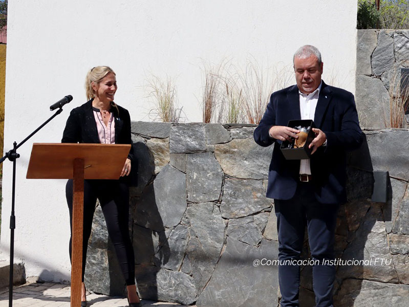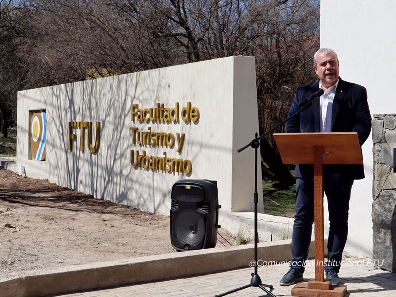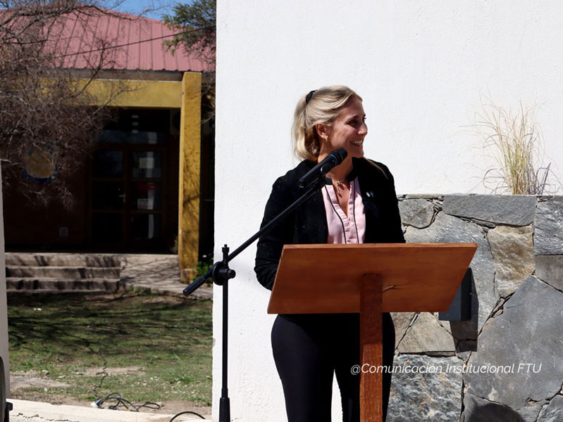 La ceremonia dio inicio a las 12:30hs; con la palabra de la decana quien expresó “…Hoy, es un día muy importante para nuestra Facultad, poder inaugurar esta obra con la presencia del rector en su último acto institucional aquí en la FTU. Esta obra es muy importante para nosotros, porque nos identifica. Nos identifica como Universidad y como Facultad de cara a la comunidad y también refuerza el sentido de pertenencia, estamos muy orgullosos. Esta obra se inició en el mes de marzo, llevó mucho tiempo de planificación, mucho trabajo desde la secretaría de Infraestructura de la Facultad y de la Universidad, fue muy importante, también, el apoyo brindado desde Rectorado de la Universidad que destinó fondos para la obra…”