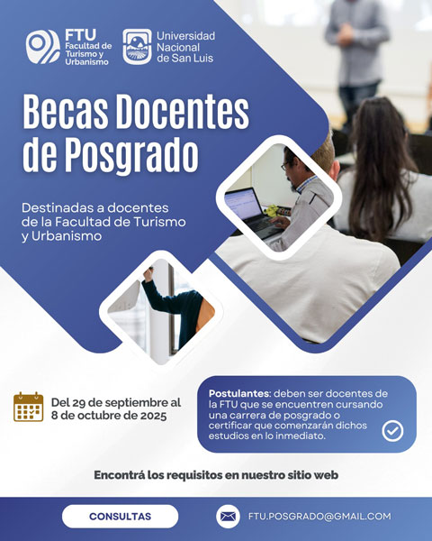 La Secretaría de Investigación y Posgrado de la FTU informa que abre la convocatoria 2025 a Becas Docentes de Posgrado, destinada a favorecer la formación de posgrado de los docentes de la facultad.