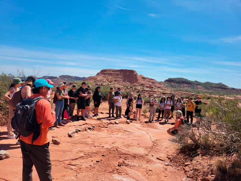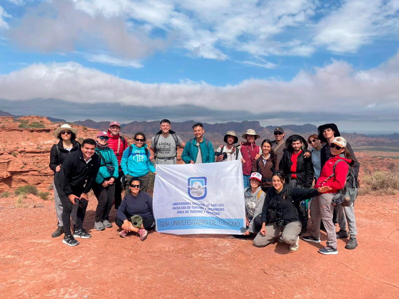 Estudiantes de la FTU, en el contexto de las asignaturas Turismo y Naturaleza de la carrera Guía Universitario de Turismo (GUT), Análisis de Recursos Turísticos Naturales, de la Tecnicatura Universitaria en Gestión Turística (TUGT), y Patrimonio Natural I y Patrimonio Natural II de la Licenciatura en Turismo (LT), visitaron el Parque Nacional Sierra de las Quijadas, junto a docentes y guías profesionales de turismo de naturaleza.