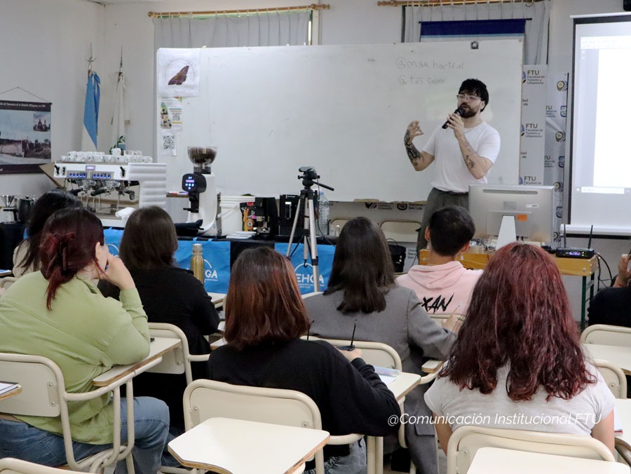 En el Campus de la FTU se llevó a cabo el Curso de Extensión “Barista Inicial” a cargo de Mauro Velázquez Hartfiel, en el marco de la vinculación mediante convenios entre la Facultad y la Asociación Empresaria Hotelero Gastronómica y Afines (AEHGA San Luis).