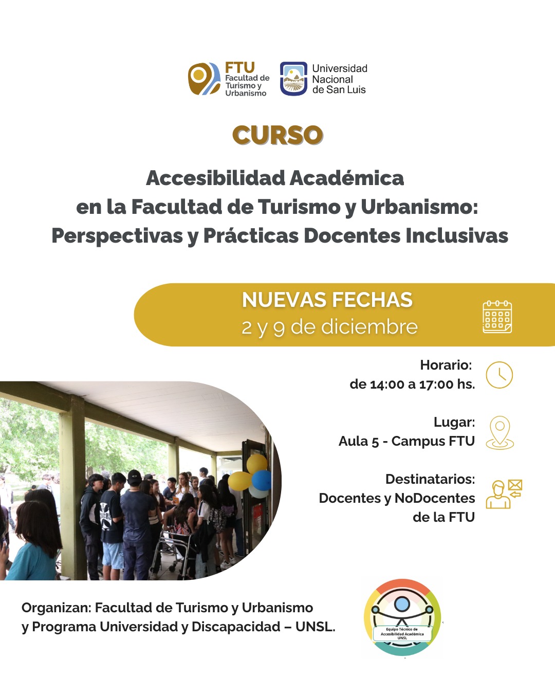 La FTU dictará el curso “Accesibilidad Académica en la Facultad de Turismo y Urbanismo: Perspectivas y Prácticas Docentes Inclusivas”, destinado a docentes, nodocentes y equipos de trabajo vinculados al ingreso universitario.