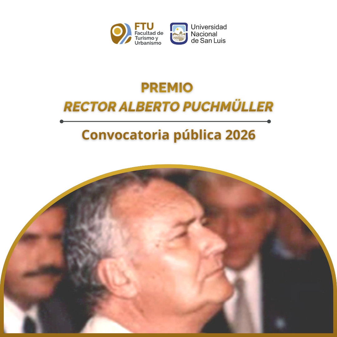 La Universidad Nacional de San Luis (UNSL) ha instituido a instancia de la Facultad de Turismo y Urbanismo (FTU) el Premio y Mención Especial “Rector Alberto Francisco Puchmüller”. Las presentaciones formales se podrán hacer entre el 1° y hasta el 31 de marzo de 2026.