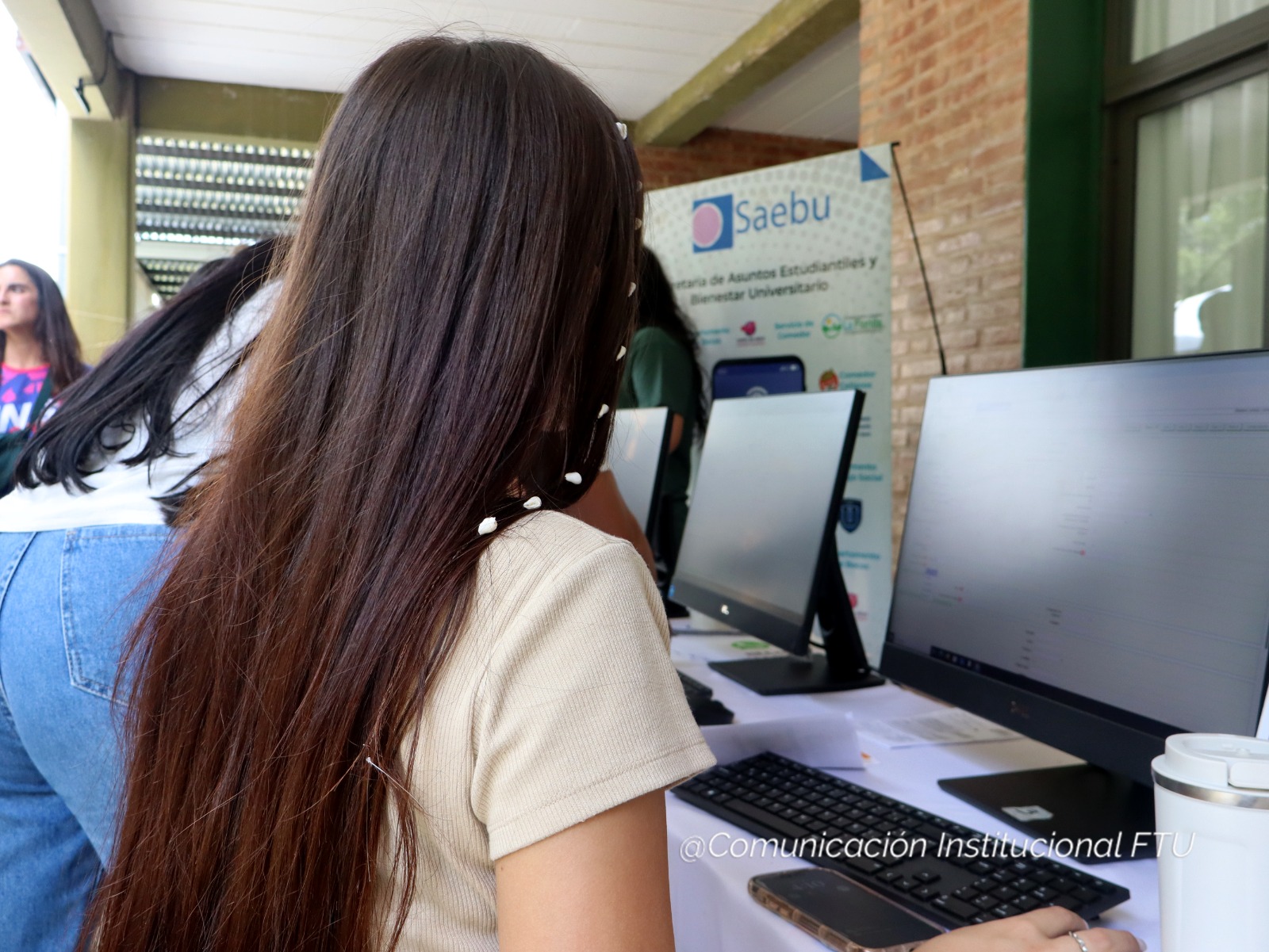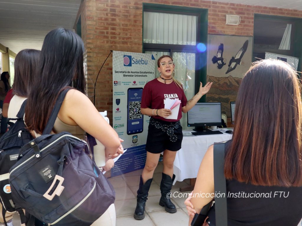 Luego el Secretario Académico de la FTU les dio la bienvenida a los ingresantes e invitó a la responsable de la Secretaría de Asuntos Estudiantiles y Bienestar Universitario (SAEBU) de Merlo, Florencia Morán, a la Secretaria General del Centro de Estudiantes Valentina Vera Becerra y a la Coordinadora del Programa de Ingreso y Permanencia de Estudiantes (PIPE), Lic. Gabriela Landriel, a informar y explicar a los ingresantes sobre las actividades a desarrollar para cada carrera en los espacios designados donde los esperaban docentes y estudiantes.