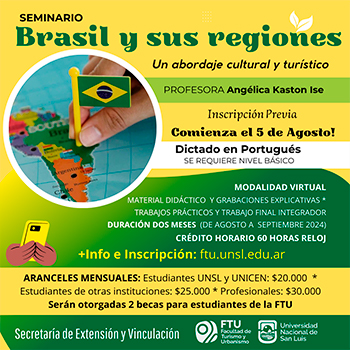 La Facultad de Turismo y Urbanismo (FTU) desde la Secretaría de Extensión y Vinculación (SEyV) dictará el Seminario “Brasil y
