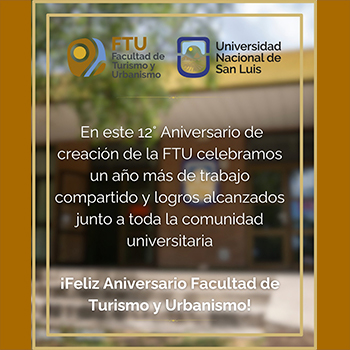 La Facultad de Turismo y Urbanismo (FTU) dependiente de la Universidad Nacional de San Luis (UNSL), cumple 13 años. La