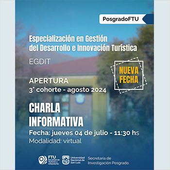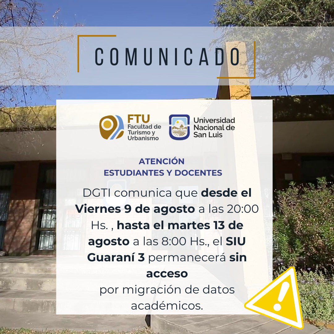 La Facultad de Turismo y Urbanismo (FTU), dependiente de la Universidad Nacional de San Luis (UNSL) realizará este jueves 27