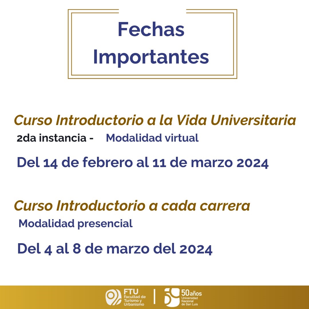 La Facultad de Turismo y Urbanismo (FTU) dependiente de la Universidad Nacional de San Luis (UNSL) realizará el Acto de