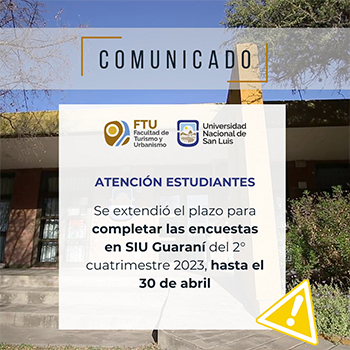 La Secretaría de Extensión y Vinculación de la Facultad de Turismo y Urbanismo (FTU) informa que se encuentra abierta hasta