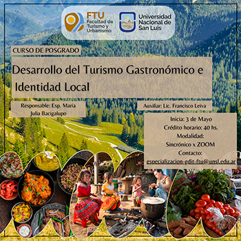 Se encuentra abierta la inscripción al curso de Posgrado “Desarrollo del Turismo Gastronómico e Identidad Local”. Dictado: días viernes 9, 16, 23