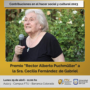Cecilia Fernández de Gabriel recibirá el Premio “Rector Alberto Francisco Puchmüller” en su edición 2023. El acto de entrega se