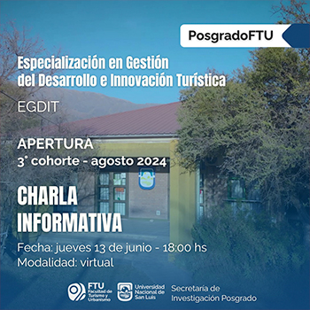 La Facultad de Turismo y Urbanismo (FTU) dependiente de la Universidad Nacional de San Luis (UNSL) realizará este jueves 26