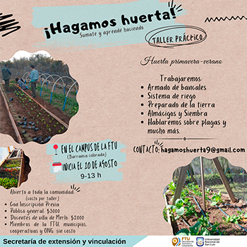 La Secretaría de Extensión y Vinculación, de la Facultad de Turismo y Urbanismo (FTU), dictará el Taller Práctico ¡Hagamos Huerta! sumate