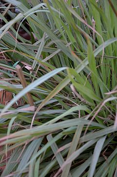 Las hojas son largas, planas ásperas de color verde claro con un inteso olor a limón al ser apretadas, brotan desde el suelo formando densas matas.