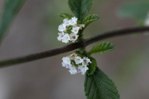 Hojas opuestas o ternadas, ovadas, obovadas, angostamente elípticas a elípticas, de 1-4,5 x 0,3-2 cm, atenuadas en la base en breve pecíolo, acuminadas, serruladas en los 2/3 superiores, rara vez enteras, áspero-escabrosas a glabrescentes en ambas caras.